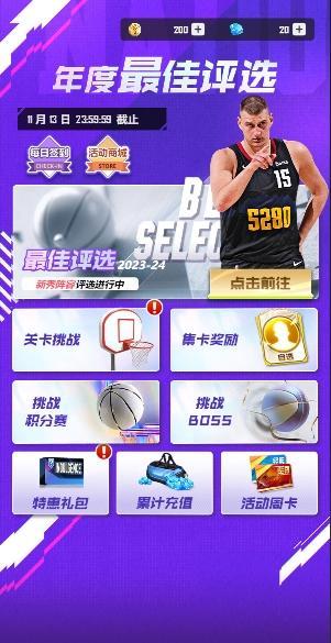 同时,您还可以在最佳阵容页面进行关卡挑战,不仅有机会获得专属货币“最佳评选币”,更有机会获得球馆材料宝箱、开赛奖励包等超值豪礼!最佳评选币可用于最佳阵容商城兑换各类最佳阵容系列卡包以及各类资源。