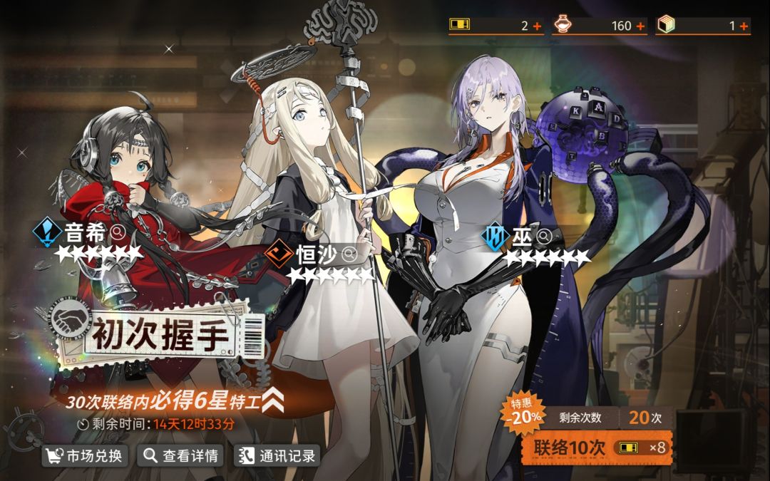 30次保底六星特工,且10连8折!推荐优先抽取,再根据新手池获得的六星特工进行后续规划!