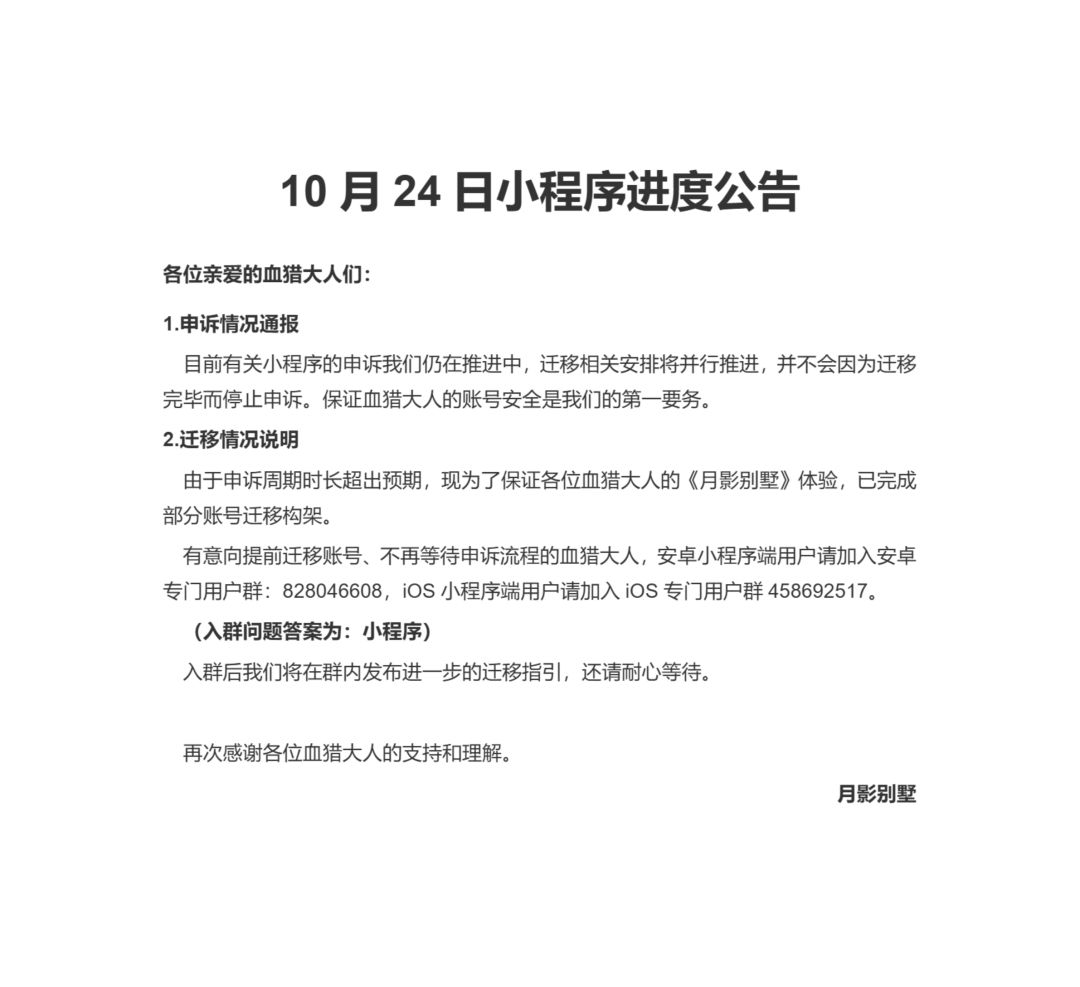 【月影别墅】24日小程序进度公告