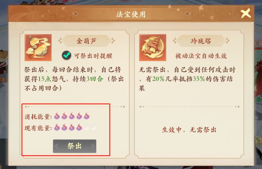 金葫芦:每回合结束时获取15点怒气,持续3回合。