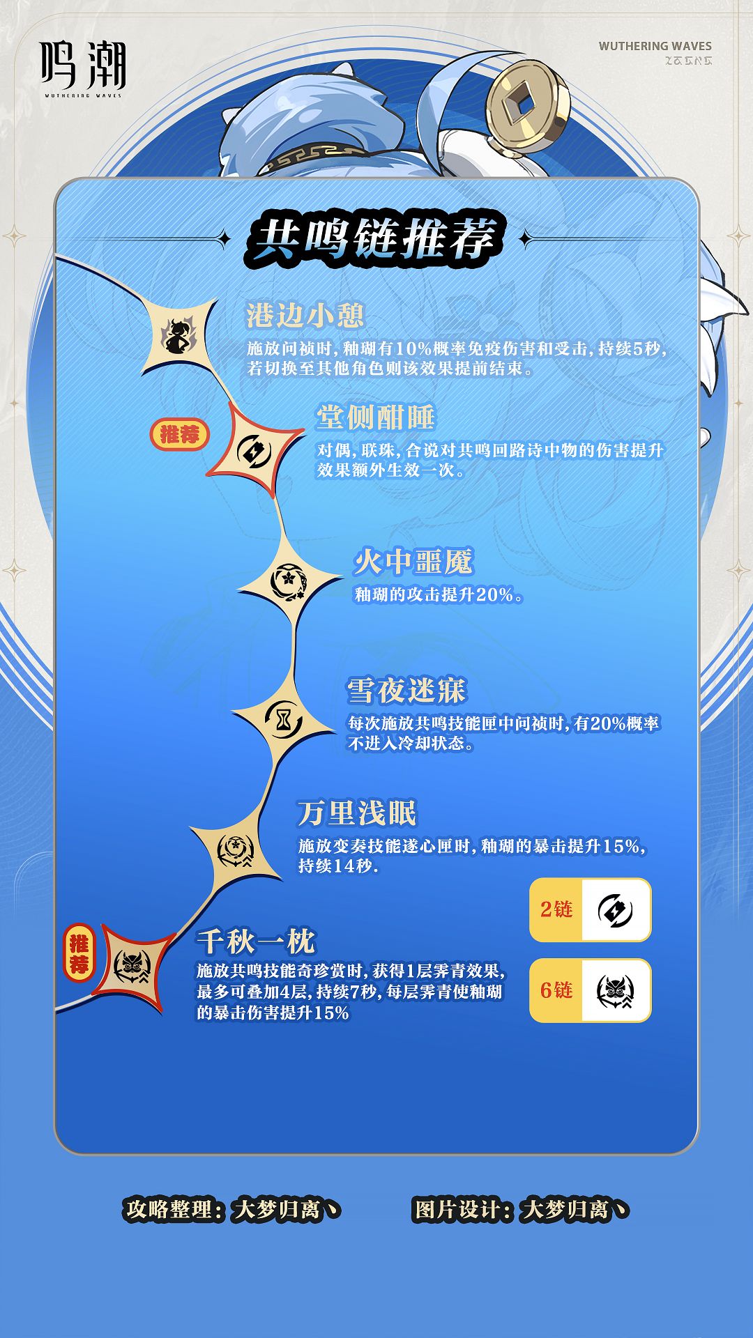 给大家整理好了釉瑚的养成攻略。 从角色养成,培养材料获取,声骸推荐,技能加点,武器装备,搭配阵容,共鸣链推荐等,全方位为大家讲解现版本釉瑚的养成。
