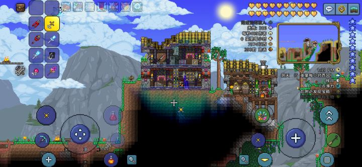展示图建筑部分建材进行的虚化:见图二,格棚和蓝浆果的那几个忘记拆了,那几个并没有作用(机械师会出售制动器,能将实体方块虚化,使用制动器为材料还可以合成制动法杖,制动法杖使用50个制动器10个铁锭10个电线制作,使用制动法杖可以自由开关能被虚化的方块。PS:虽然生物可以穿过被虚化的方块,但是却不能将方块放置到被虚化的方块上,希望1.4.5更新能允许让实体方块放在被虚化的实体方块上吧)