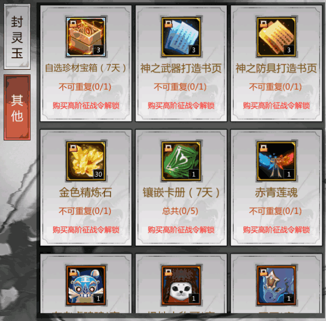 可在该界面内查看历史征战令轨迹与封灵玉收集情况!满图鉴仙术师,请出列!