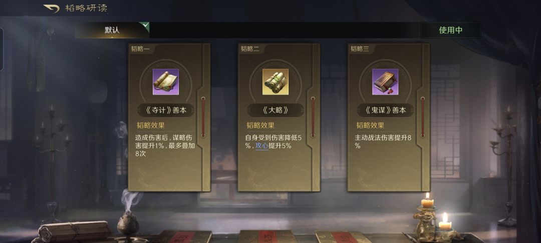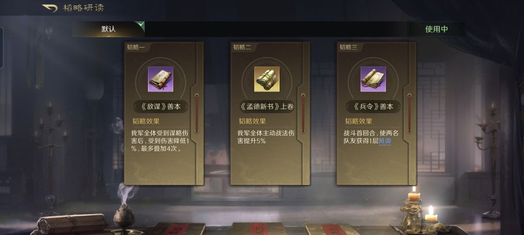 韬略库:诡道(专属)+先战善本+谋复善本。