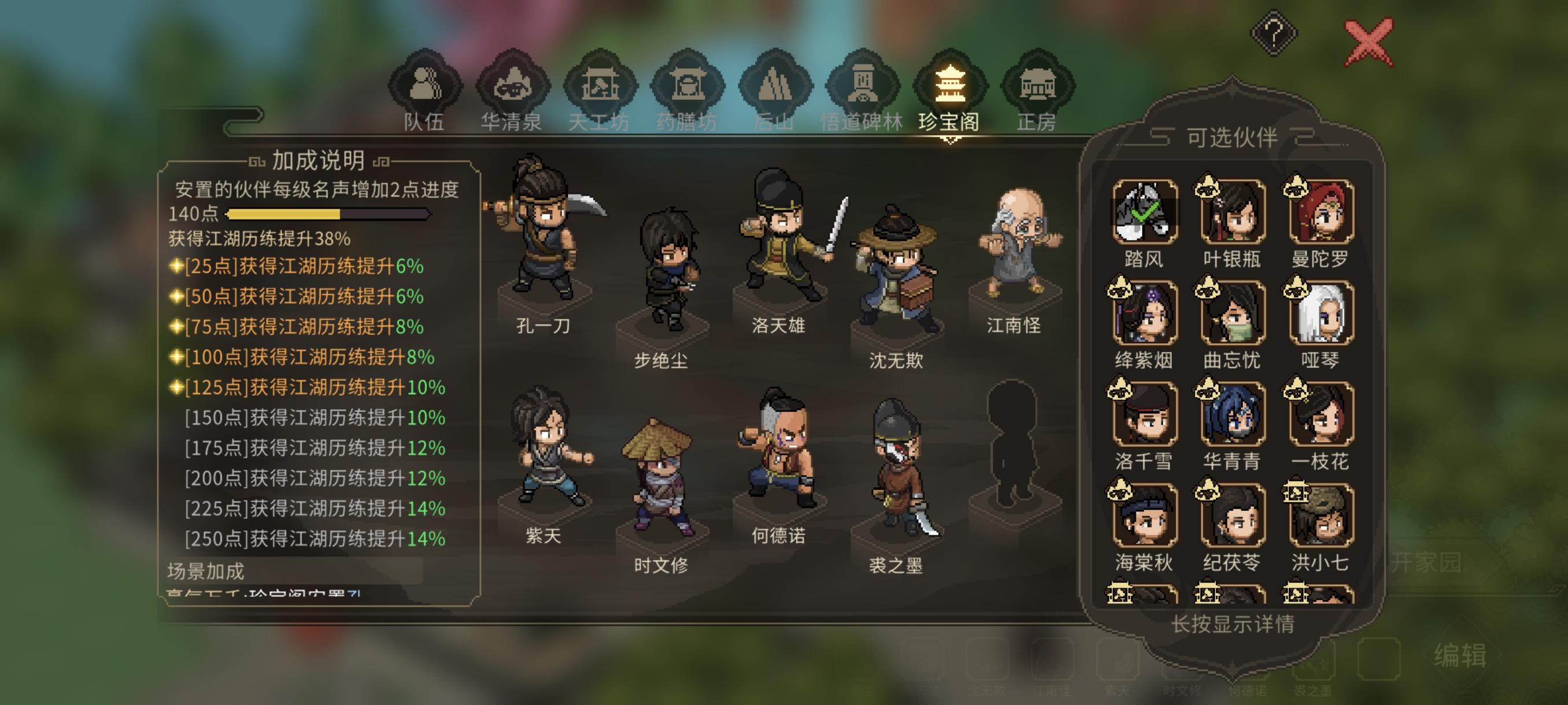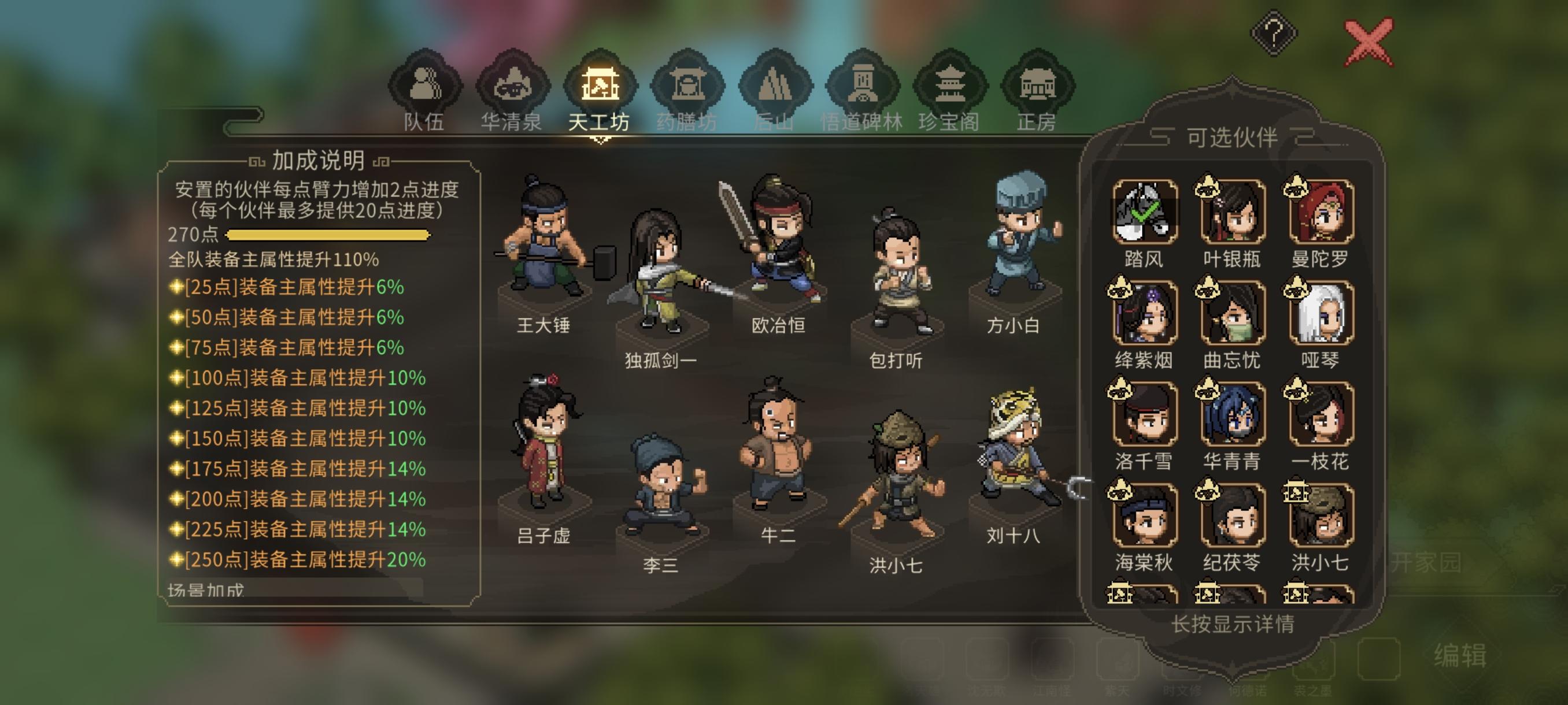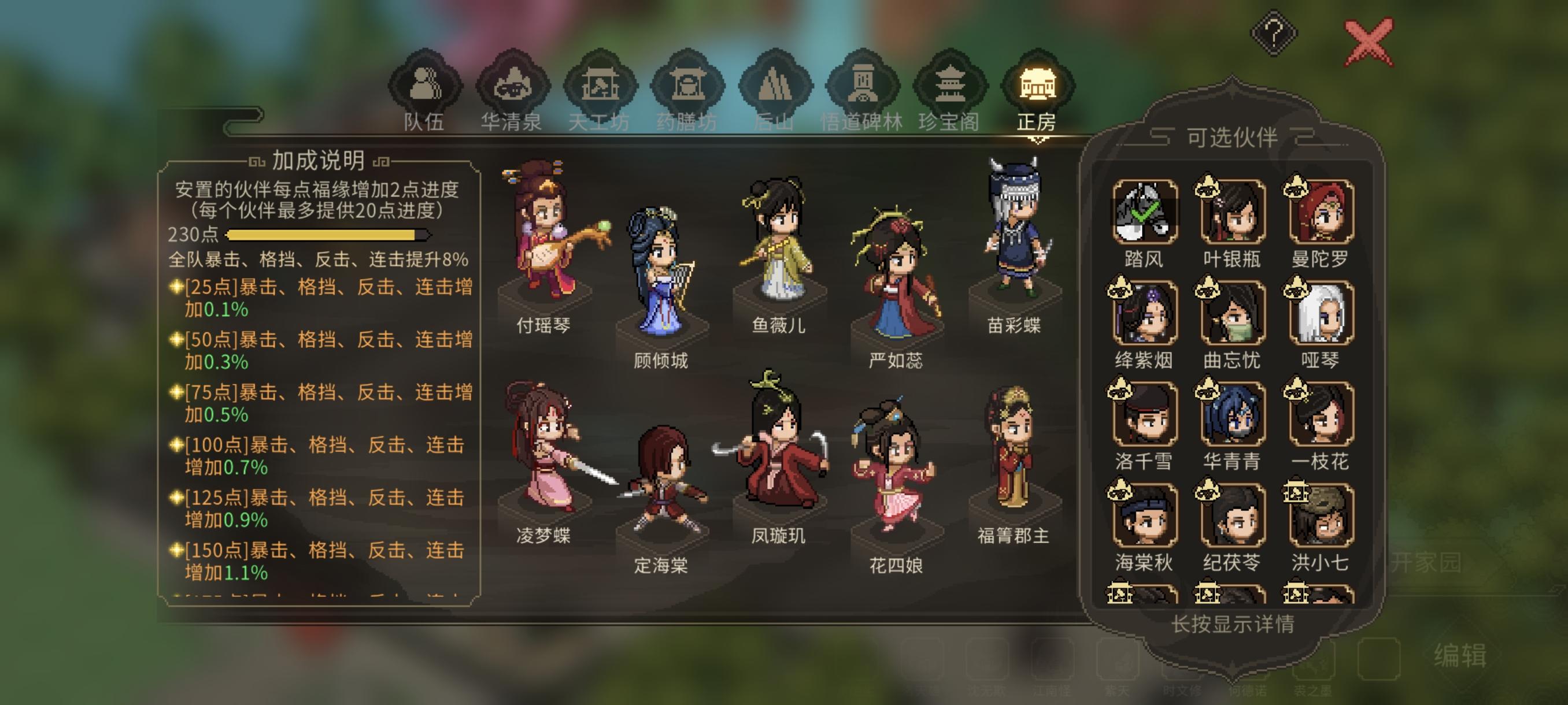 还有就是装备属性最大值和考试MOD什么意思能出来了,我前期刷逍遥衣都要刷一个小时,每次考试都要找都要看图片,不过考试是小事,主要是装备,由于我有点强迫症,装备一般都想要完美属性,但是以前刷装备时刷了四五个小时,后面受不了去导入了一个全满属性装备的存档,但是怎么说呢,有点亏珍宝阁(比如隐身衣可以燕子窝拿像我没有完美我就不用的人只能珍宝阁拿了),而且流派选择的也少(毕竟就八个位置),而且我外功也不喜欢万物皆可万民掌(不然我拿那么多武功又不是只为融合万民掌),所以我一般开局不会点草木皆兵(乐器除外,短兵还有圣火令乐器真是啥都没),所以要是强烈建议官方出一个装备最大值MOD吧(要是能随带把考试给出了也可以)。