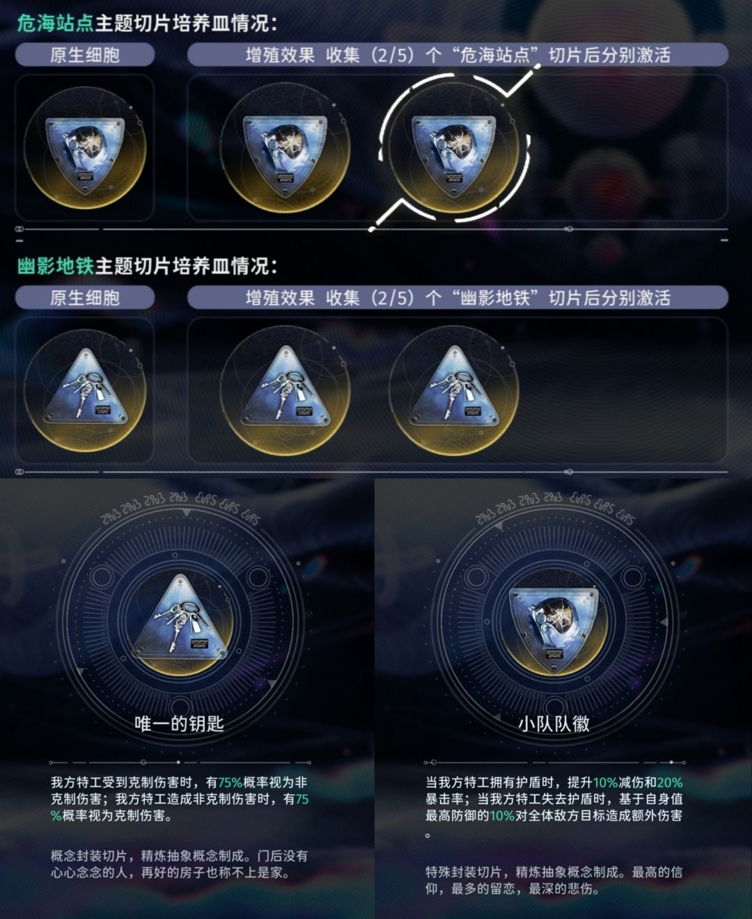 - 核心主题切片:选择大于努力,推荐幽影地铁5个(75%概率把对敌的非克制伤害转换成克制伤害),危海站点5个(携带护盾时减伤加暴击)