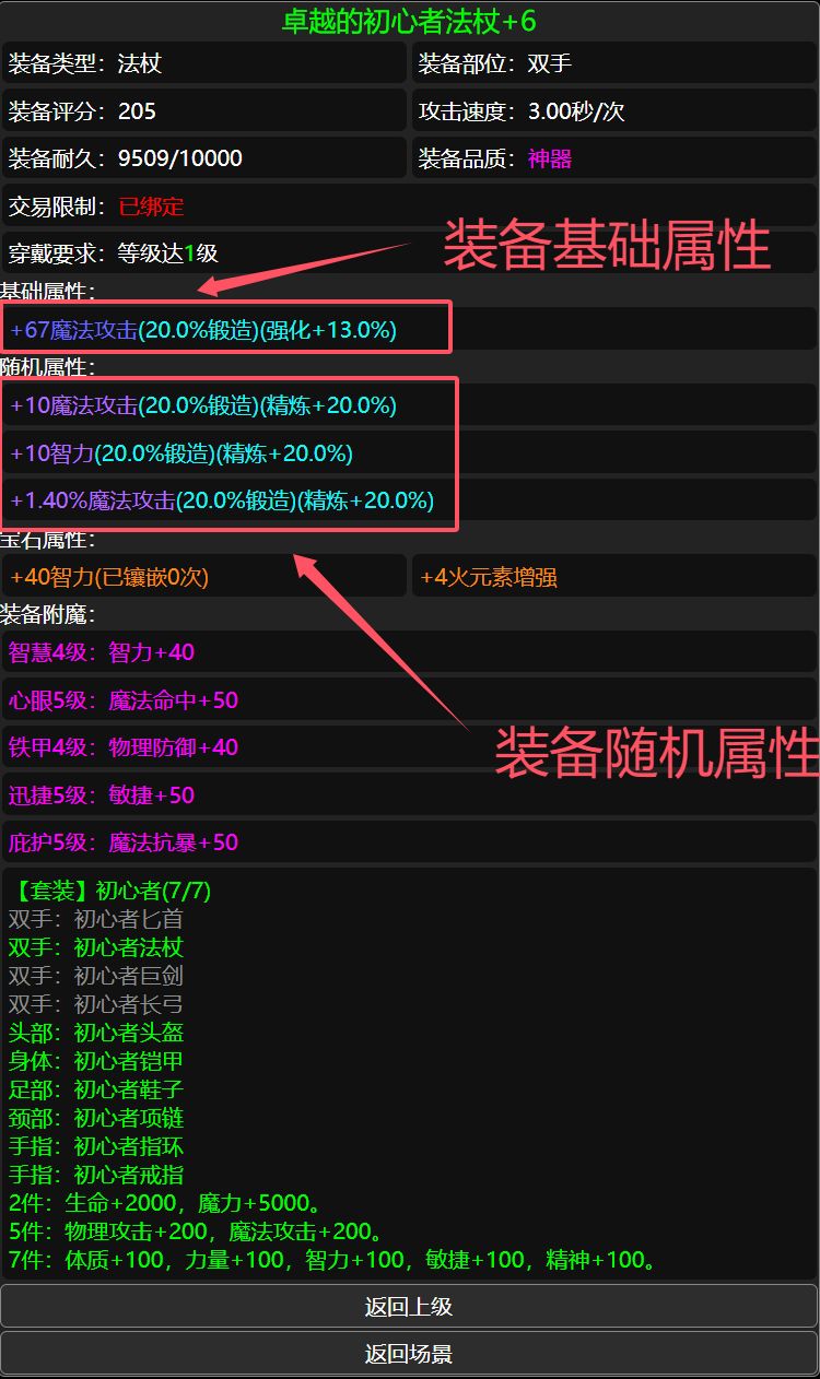 装备的属性分为【基础属性】和【随机属性】,决定装备好坏的则是随机属性条数和随机属性类型。