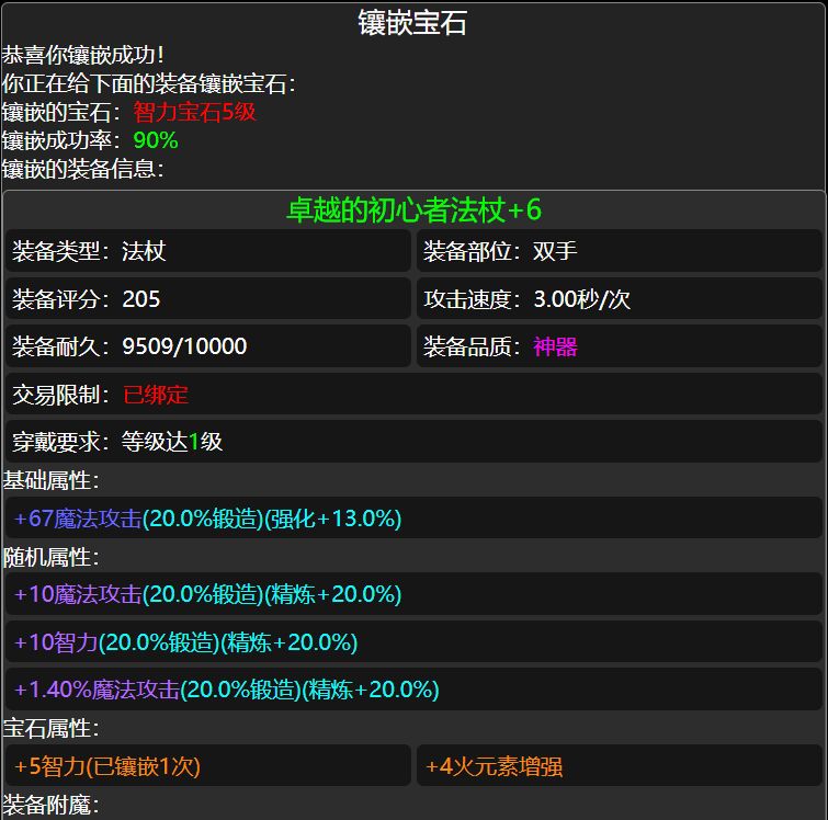 【镶嵌说明】镶嵌宝石有成功率,成功后则增加属性,失败后,无法继续镶嵌,重新镶嵌,会从0开始。