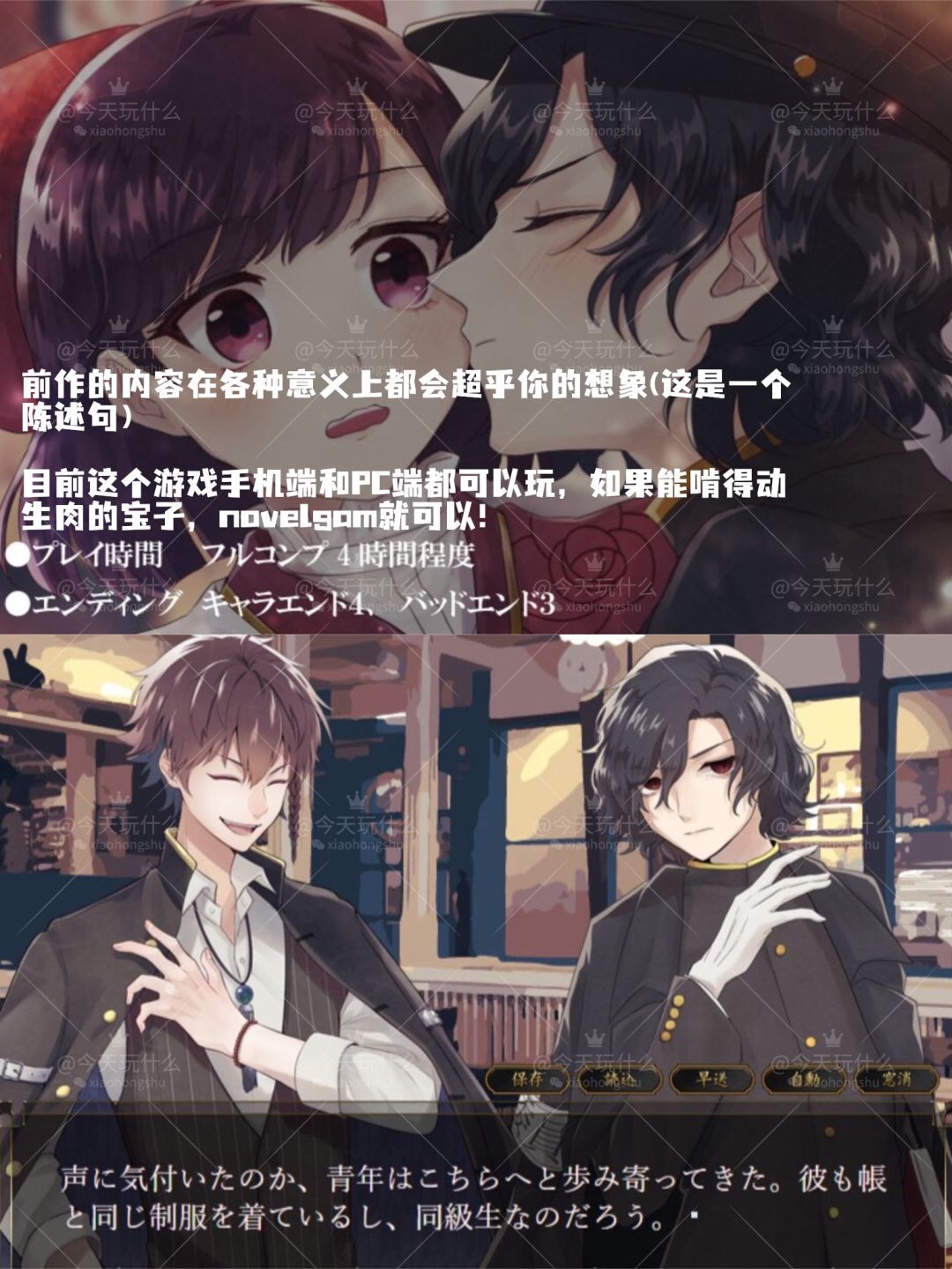 ✔️之前也是被劝先玩前作,整个就是一个:官配他好癫我好爱啊!!当然一部分原因也是因为,前传内容很多且比【致命之爱】的内容丰富,前传玩后再玩感觉会很不一样!而且续作很怕对比,说实话文本量实在不大,虽然角色形象是真的上升了一个level!!!
