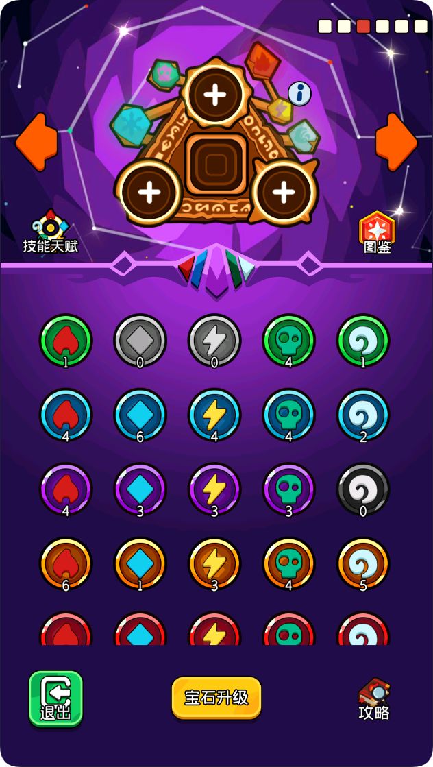 同时,技能又分成绿、蓝、紫、橙、红、幻彩、星辰七个品质,品质越高的元素组成的技能效果越强,但是技能本身,需要具有策略性的搭配玩家装备属性,才能获得更好的实用性,例如:防御越强的玩家,可以选择寒冰甲、治疗图腾、闪避大师等技能,对自身的抗击打能力极限提升,从而获得战斗中“免伤”的效果。