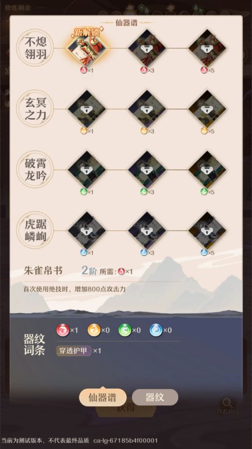 每次突破某一关键时期(如炼气中期)时,都将获得选择器纹词条的机会,不同器纹词条的组合能够解锁不同效果的仙器!获得不同的提升!