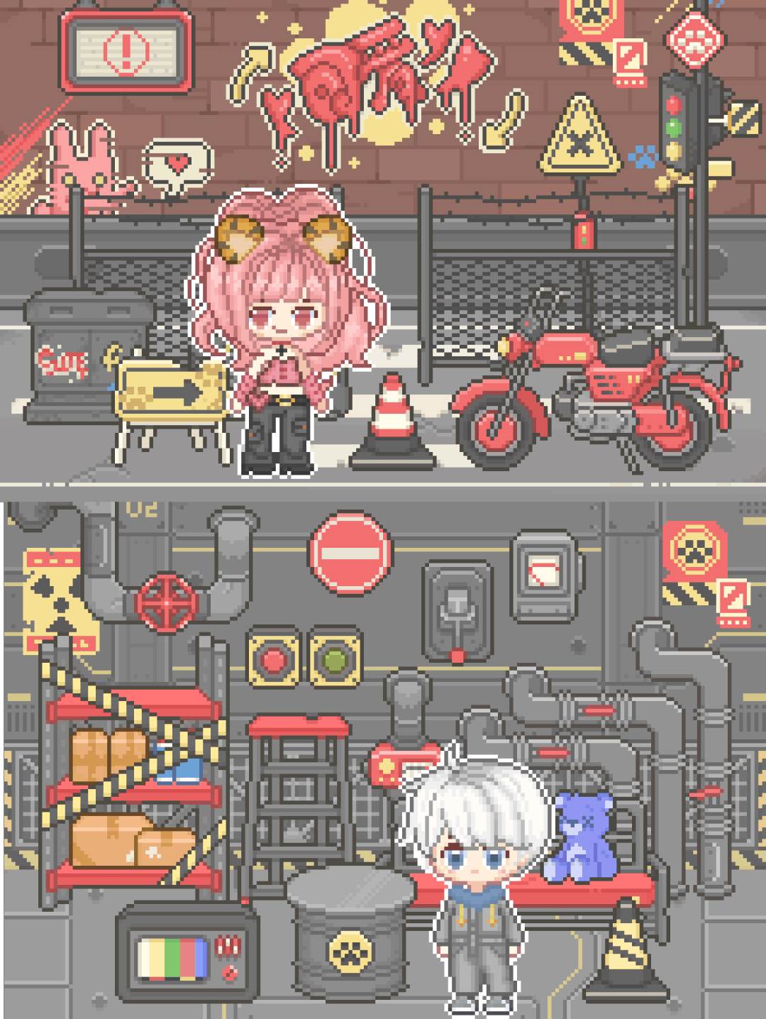 主打一个冷酷和破碎感,颜色都比较冷,和主要用灰色,然后加上一些看起来坏掉的家具。