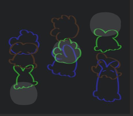我们的游戏主角是兔狸,一种胖乎乎、圆滚滚的生物。我们希望它在游戏中像团子一样轻快地蹦蹦跳跳。为了突出兔狸的“Q弹”质感,我们在美术设计中主要运用了圆形元素,强化其柔软和可爱的视觉效果: