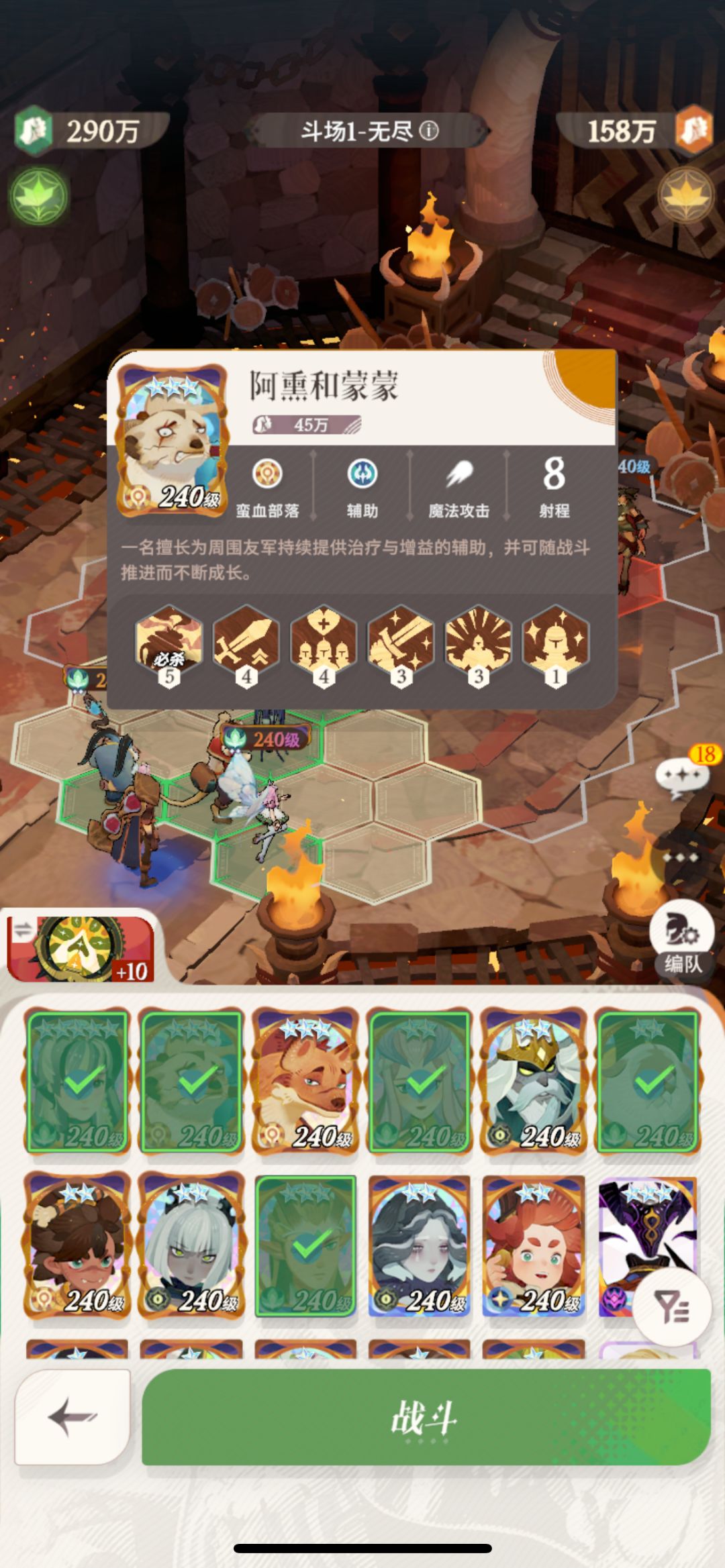 阵容推荐:首先该模式的敌人是免疫物理伤害的,划重点哦,免疫物理伤害,所以不要上阵物理系英雄啦,好在小舞的英雄基本都是魔法伤害的英雄多一些,尤其是群伤,这里老羊是必须要上的哈,魔法群伤大佬,其次是小五月,超神魔卡不必说啦,蝴蝶有的最好要上一下,由于怪到处乱跑,蝴蝶还是比较灵活的,如果有凤凰的话也可以上凤凰大姐姐,前排需要一个,开场时抵挡一下伤害,埃隆是最好的选择了,可以聚怪,又是魔法伤害,防御也很高,严重怀疑这就是埃隆的主场!最后奶爸要上的哈,保证续航的前提还能加buff。