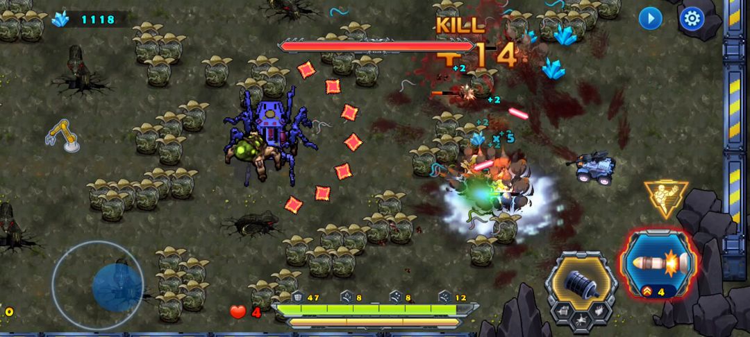 双头蛇窟4:第四关,进攻型,本关卡,需要快速清理掉满地的小蛇和小怪,把自己的武器提升等级,获得更多的战术卡,就可以轻松打出上百的连杀和过关了。