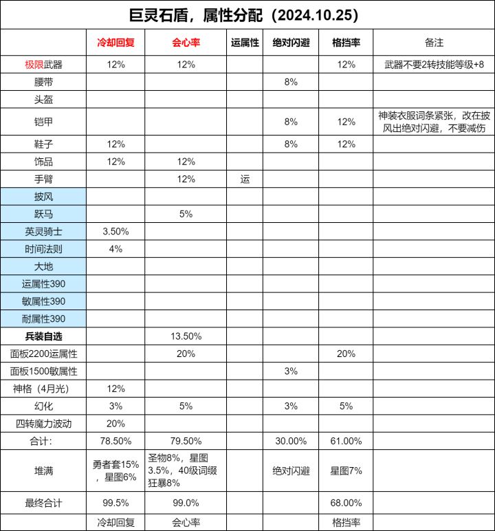 巨灵石盾,7星兵装搭配分享(2024.10.25)