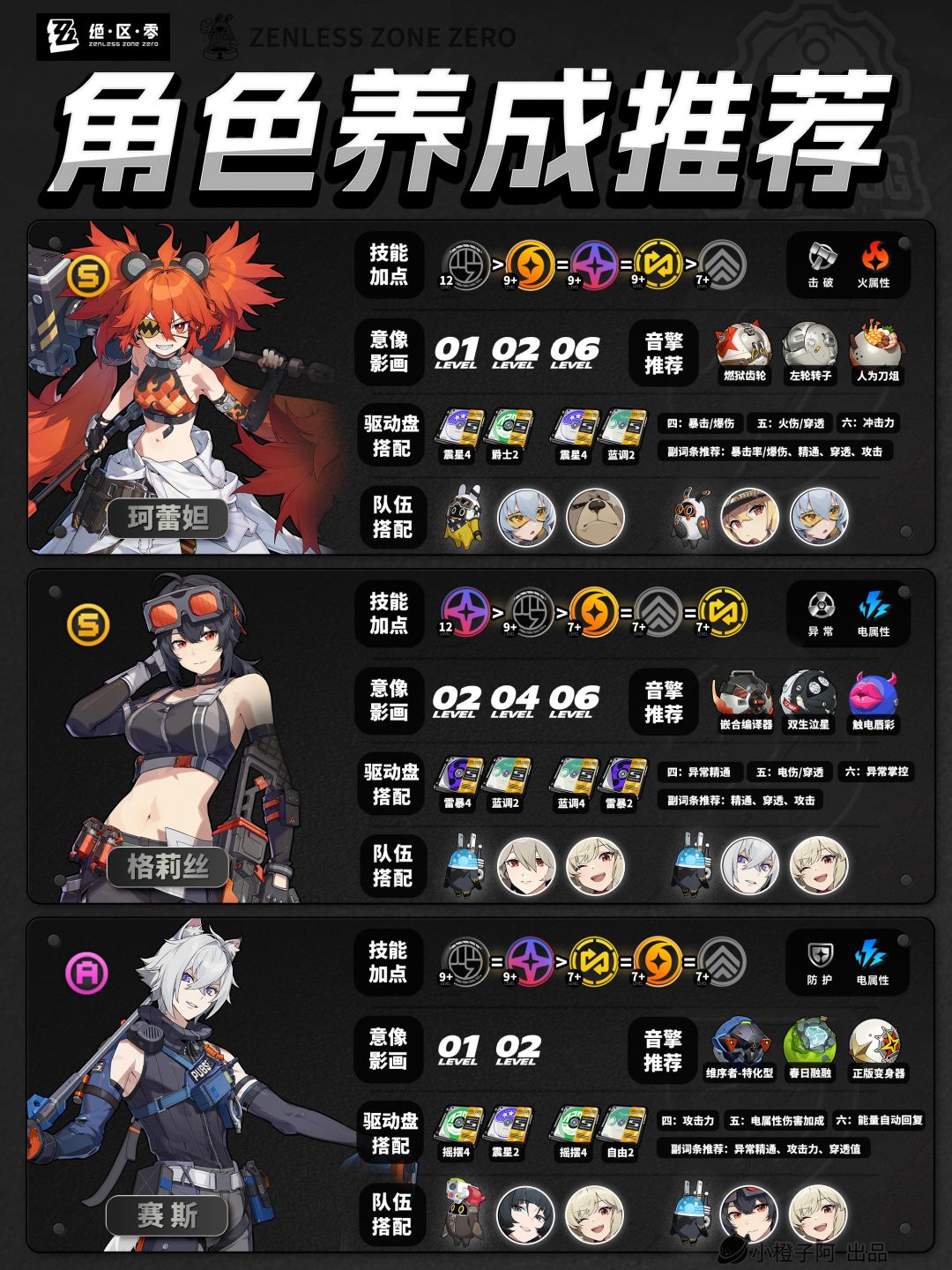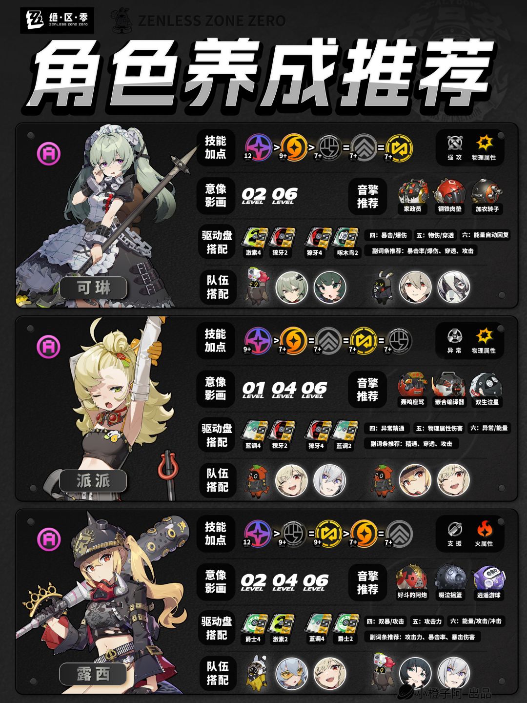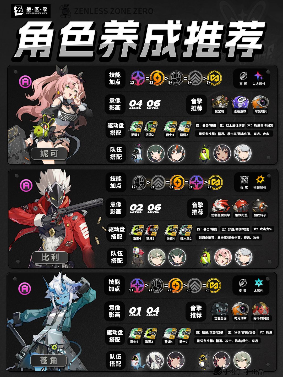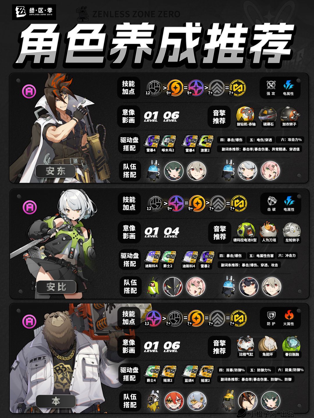 这一期是v1.2.5(加入柏妮思)角色一图流攻略,橙子将改动(相比于v1.2.0)的地方在下方,小伙伴可根据自身需要查看修正。