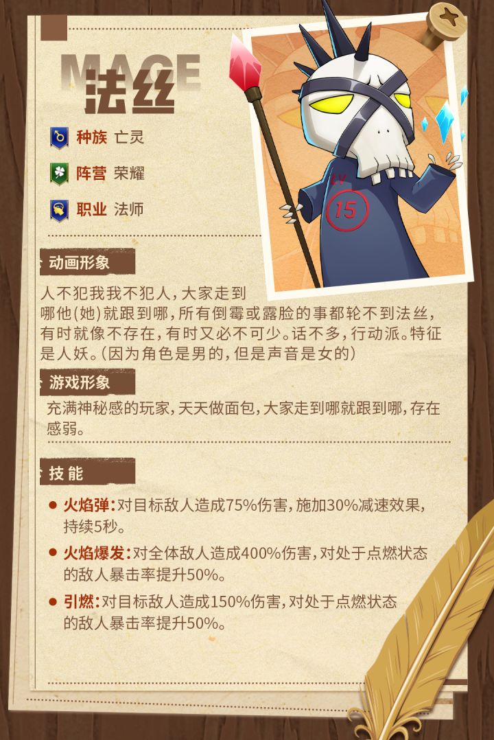特征是人妖的亡灵法师,看似不起眼,他会在冒险者心情低落的时候变出一块小面包声援你哦!在守卫战里,能够释放全图法术攻击的法丝势必是强力的存在。