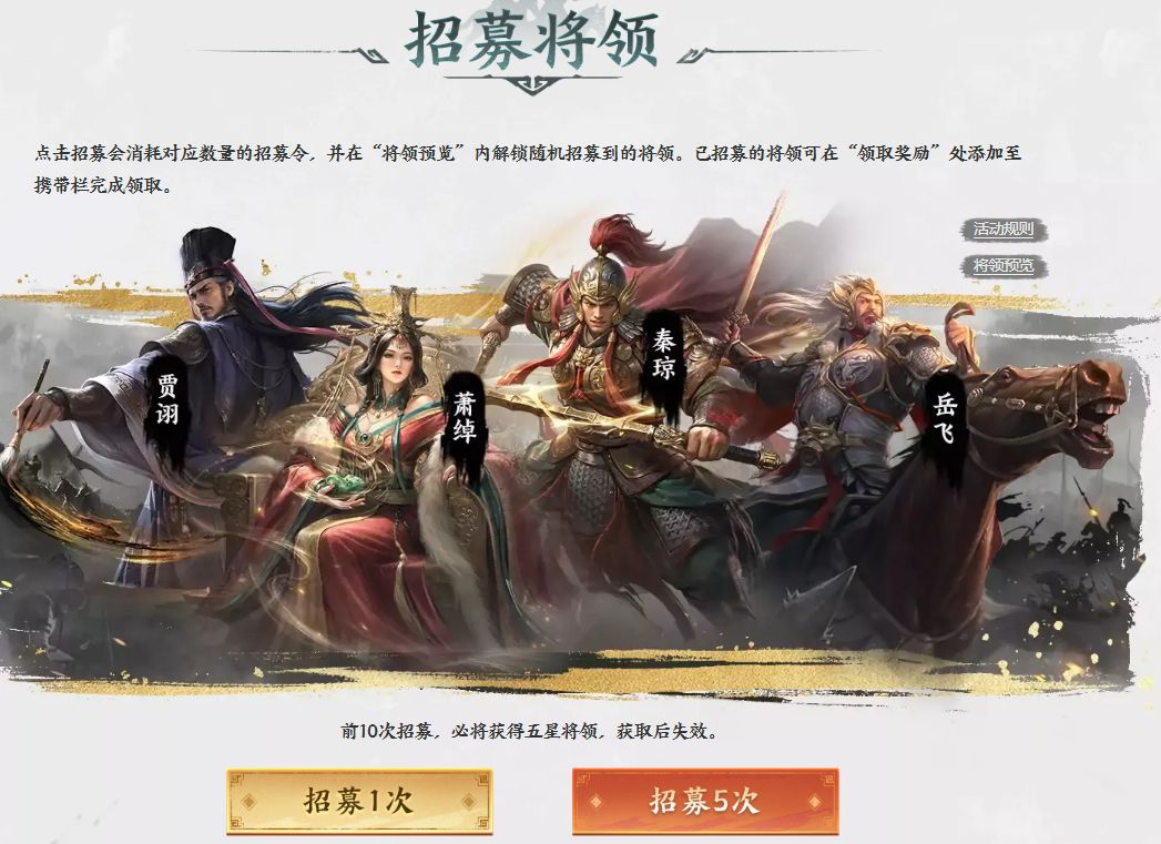 目前,《王于兴师》官网预约火热进行中,预约专题站同步上线。现在预约游戏即可获得齐国名将田单!更有技能点、通宝、祈福灯等丰厚奖励来拿!另外游戏现在也开启了预抽卡活动,五星将领免费送!正式上线后可在游戏中直接获得。