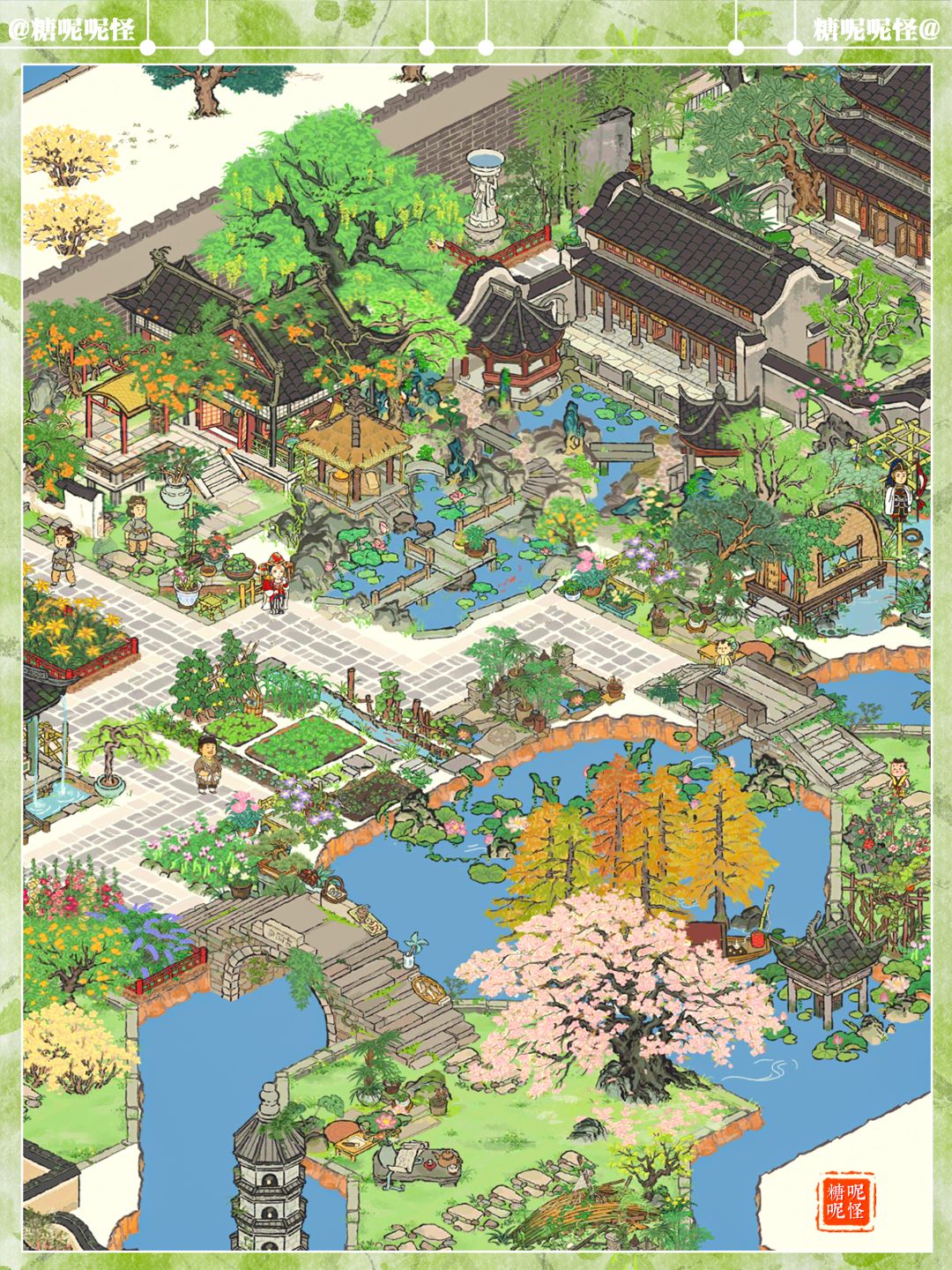 2️⃣建筑:天一阁|曲桥观荷|黄金楼|云梦山|自雨亭|凌霄宅前花|亭亭枇杷|枫杨树|故人茶庄|乡居小屋|池芳亭|夏日垂钓|疏食菜畦|溪畔悠悠|林间野舟|烟雨桥|江中塔|月影桥|烂漫繁樱|桂子飘香|聚宝盆|投食槽|盈盈荷莲|水则碑|观象台|不老山|停云山