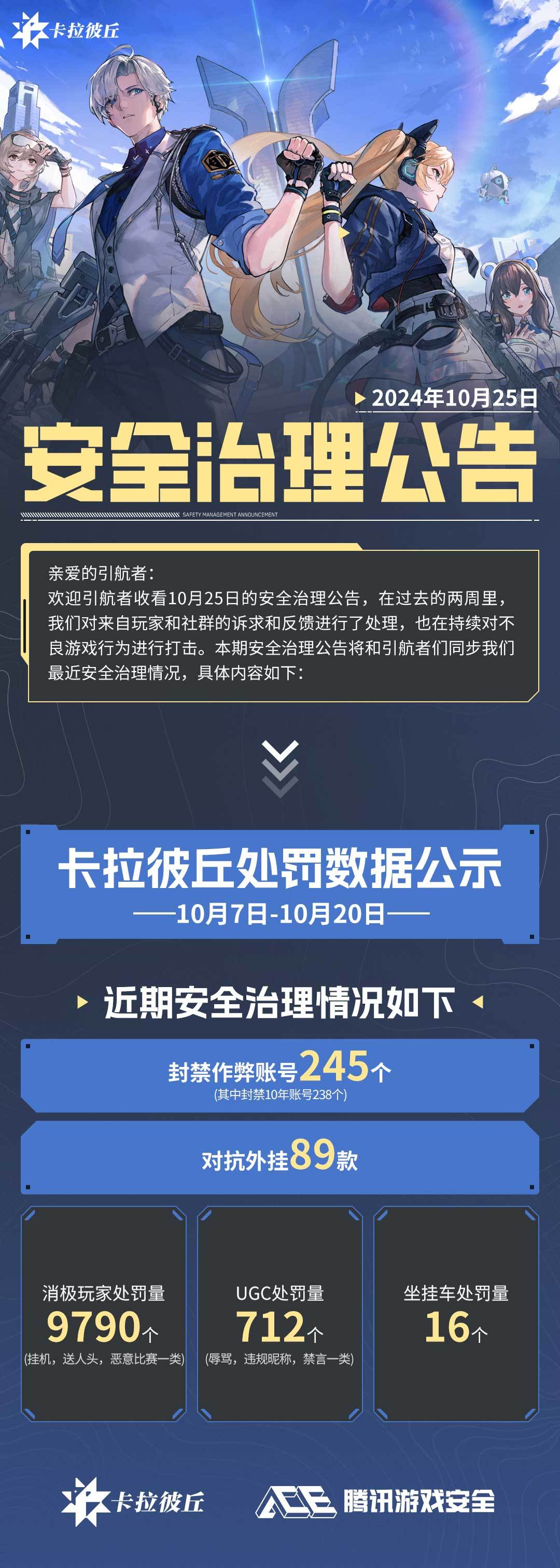 欢迎引航者收看10月25日的安全治理公告,在过去的两周里,我们对来自玩家和社群的诉求和反馈进行了处理,也在持续对不良游戏行为进行打击。本期安全治理公告将和引航者们同步我们最近的安全治理情况,具体内容如下: