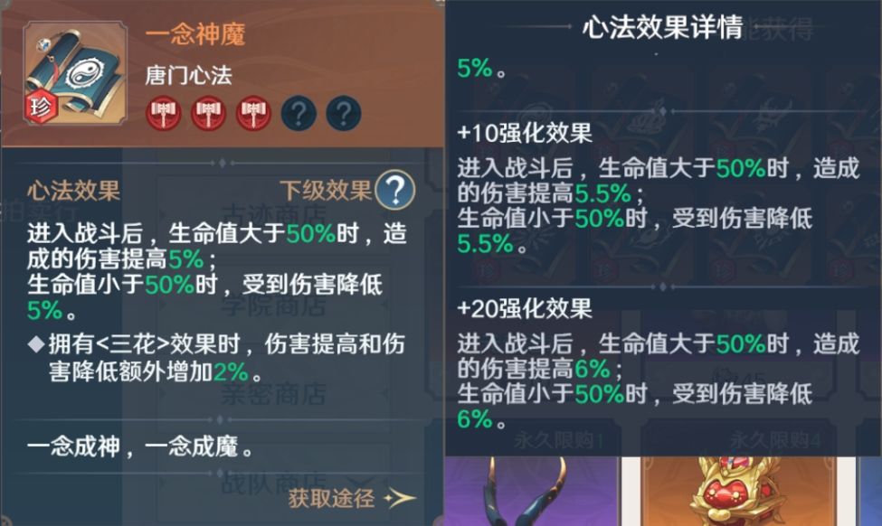 ◎ 一念神魔:这本心法是红色内息必备心法,输出心法的首选。