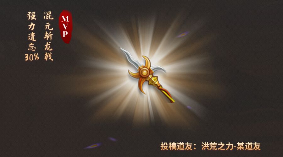 恭喜来自【洪荒之力】某道友的强力遗忘30%封手神枪获得本期MVP!