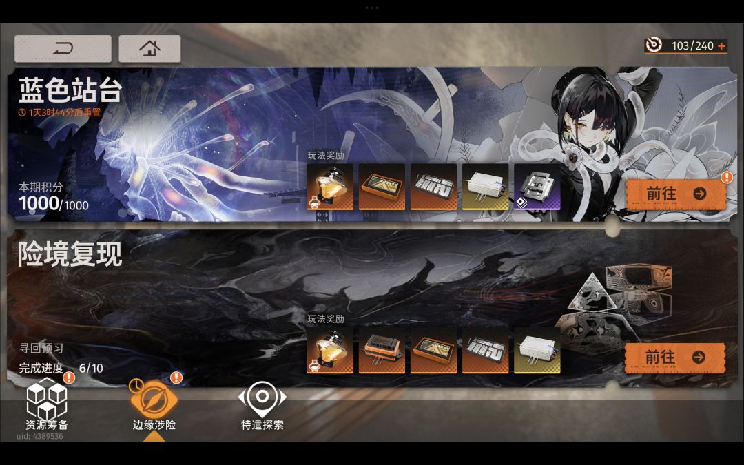 后期红卡需要刷词条,一定要把活动过了,险境复现会送「定向整流元件」这个很重要,一定要用到主c或者难刷的词条上面。