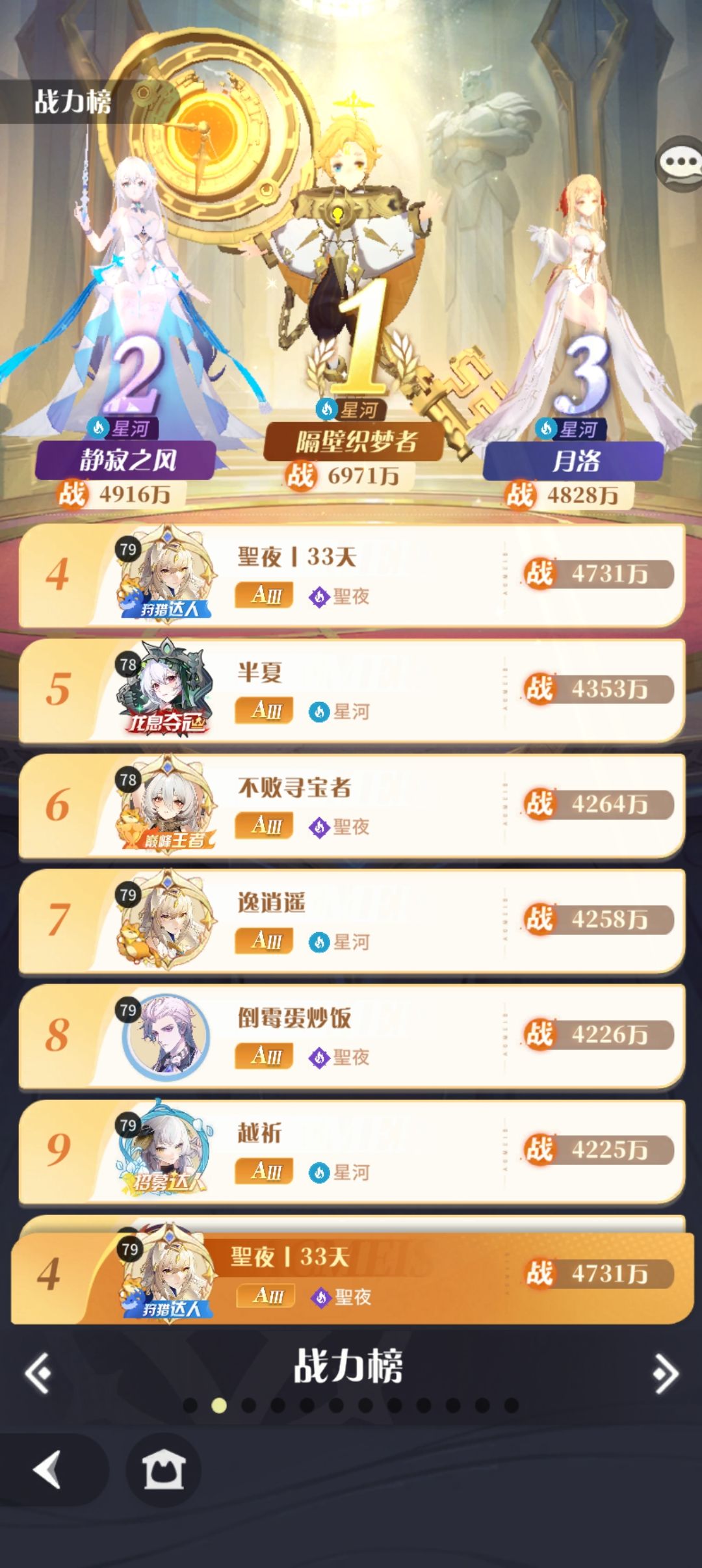 ②爬勇士之塔强:同战力,目前基本可以比其他多50层左右(如图),每天比其他人多拿材料不言而喻。