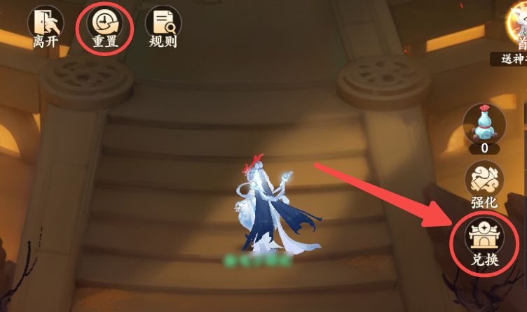 实操:首先进入场景后,先看右侧的【兑换】,看下初始的强化商城是否有【仁义之心】