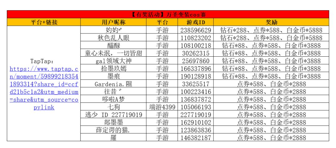 4.缺少平台或ID信息导致无法发放奖励,将视为放弃领奖。