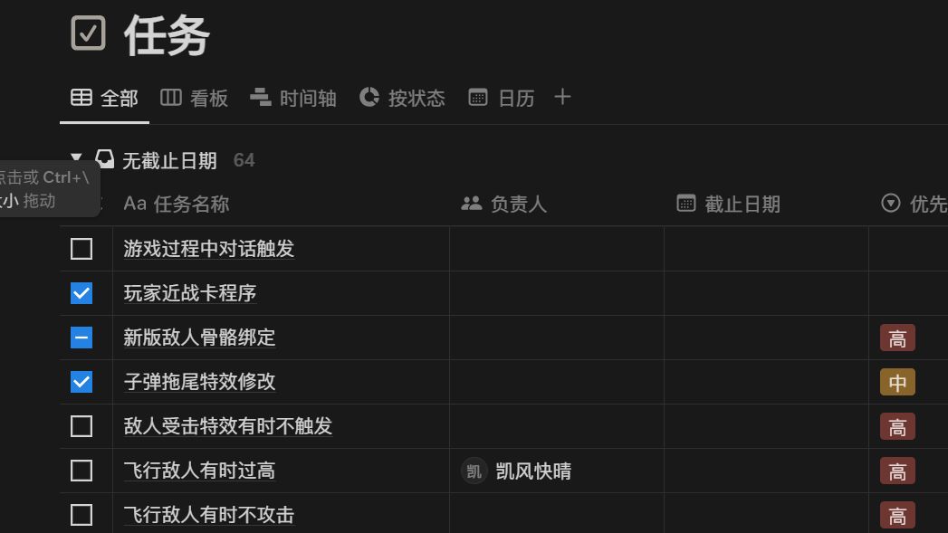 在会议过程中,和队员们一起在notion里重新确定了哪些bug需要改,哪些是我们的“特色”。Notion这个软件是我们做到这第三个游戏才启用的,作为小游戏的项目管理软件,堪堪够用,唯一的问题就是需要不断手动维护修改,对于我们几乎全员兼职的团队来说有点考验了。