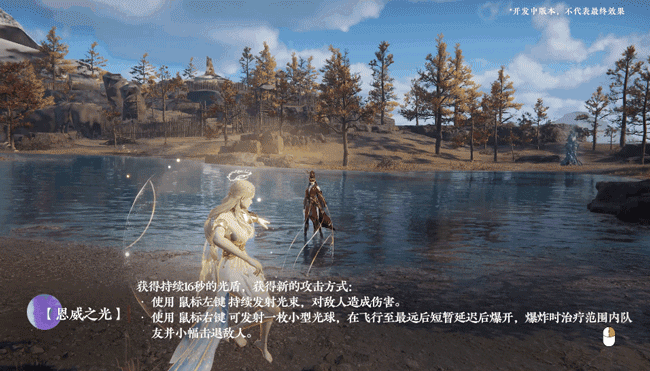 【恩威之光]·使用 鼠标右键可发射一枚小型光球,在飞行至最远后短暂延迟后爆开,爆炸时治疗范围内队友并小幅击退敌人。
