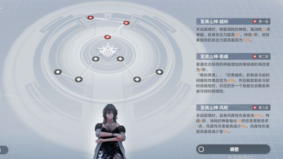 1级专武 独立伤害提高8% 奥义切蓝枪回8%血 黄3神格额外+10%暴击率 其余效果不变