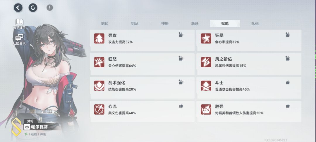 输出向通用输出跃迁 因为红枪的耗血机制 34位置带喋血 加速循环56可以带出场神能 也可以选择3技能等级