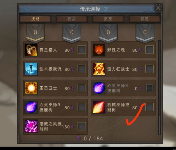 选择无名剑主为了获得更多传承点数,但却要选择机械巫师的技能,具体做法:先选择<传承选择>-无名剑,再选择机械巫师技能树,还要选择炎之轮回,这是为了它开局就提供的一件很重要的装备-铁人之臂,这是配合机械巫师技能-流火召唤,打出无敌硬直的关键。