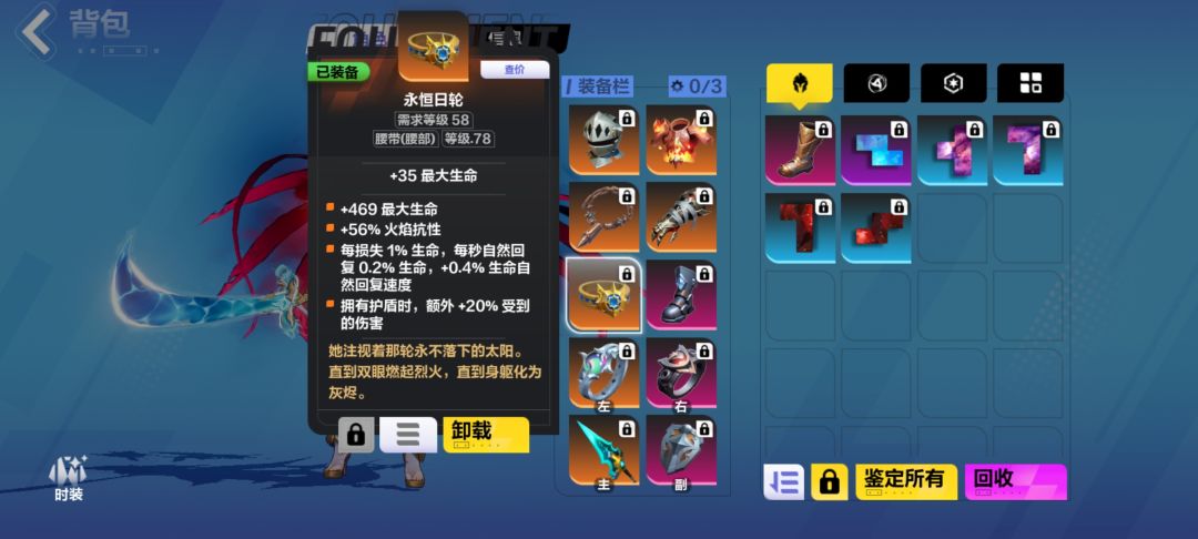 1.因为带了永恒日轮,所以,我们不要有护盾词缀,在这一套里主要是鞋子和盾牌,注意一下就行;