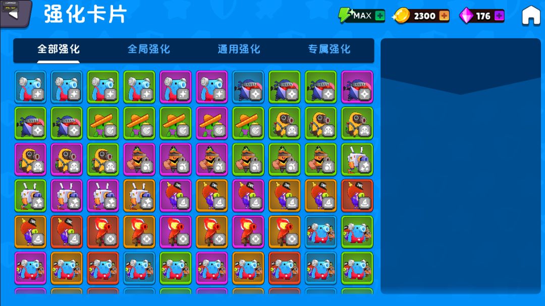 所有的强化都可以在强化卡片页面中进行查看,目前有90张强化卡片,考虑到实际测试可能遇到来不及解决的问题,最终版本可能会不足90个。