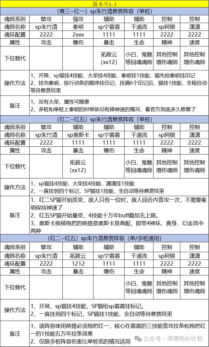 大家好,我是泽泽,双神活动之后,SP猫的悬赏阵容也有了相应的变化,对1.0进行了一个修改