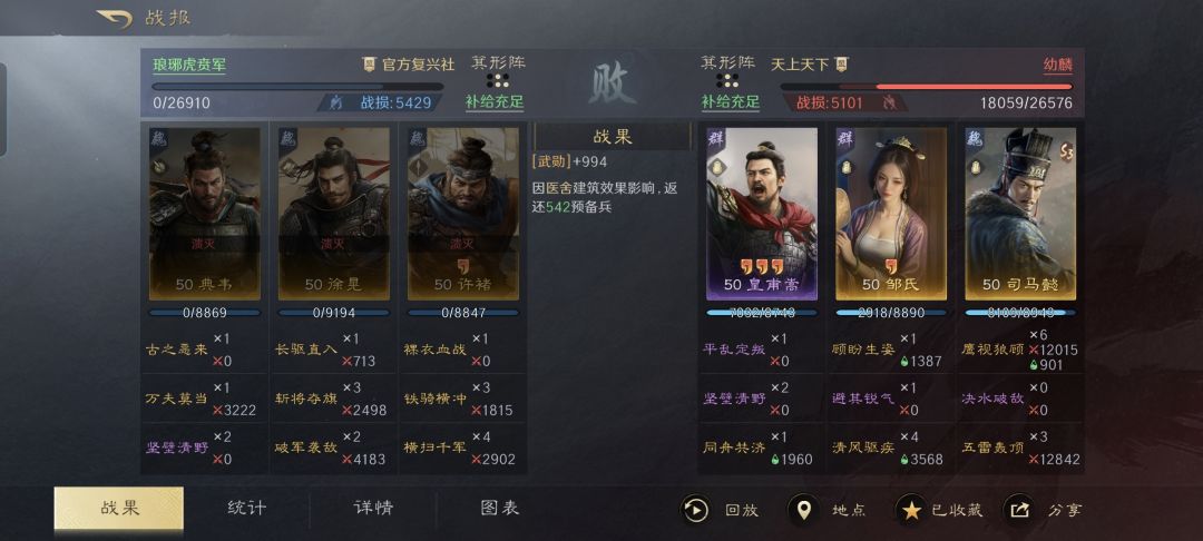 战报统计的结果清晰显示了,典韦、许褚和徐晃都没有能够敲疼皇甫嵩,将近300点的统率值,就算让吕布来啃都得把牙给啃崩了。