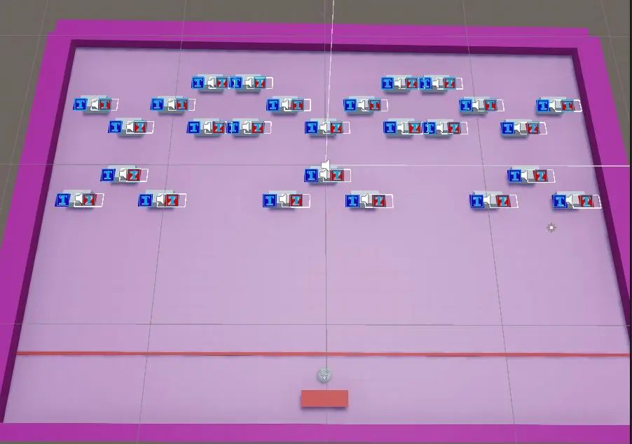 【游戏建立在传统打砖块游戏基础上,增加黑暗区域和照明弹玩法。你需要先试用无伤害的照明弹照亮区域找到砖块,再用传统弹球打碎它。 如果不能快速定位并消灭敌人,敌人就会向你的方向移动,走入黄线将减损生命值。】 今日进展: 已完成关卡制作,添加几个Boss战,游戏进入可玩阶段 接下来将致力于测试调整及美术素材