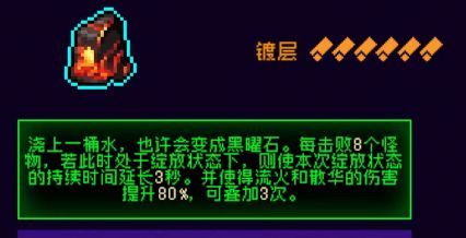 实际效果为近战伤害增加225%因为跟磨刀石同属于一个乘区存在严重的加成稀释问题,完全可以用火焱果来代替,优势处不需要镀层![[表情_丑竟己]](https://img.tapimg.com/market/images/c5a8216903140825d6cff93e037f52e0.png)