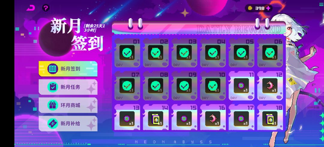 活动期间一共可以获得新月能量×1200+“每日全勤”(活动专属道具)
