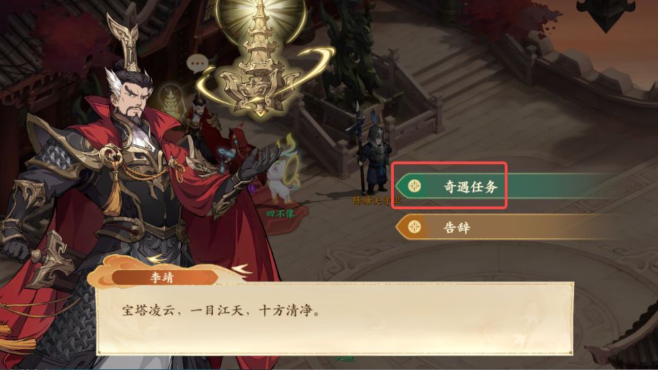 3、对话结束后前往陈塘关如图所示处与狂妄士兵对话,对话后触发战斗,战斗结束后获得妄珠