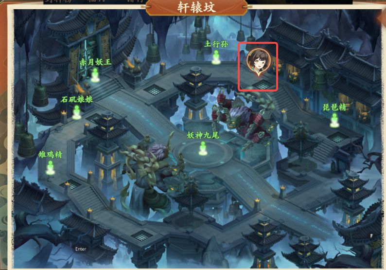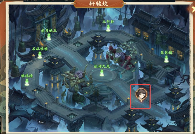 1、前往轩辕坟如图所示处与镇妖使者对话,领取奇遇任务