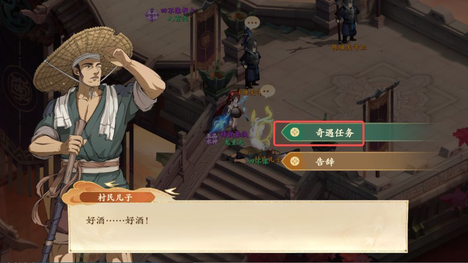 5、购买成功后回到陈塘关如图所示地点与村民儿子对话,上交琼华酒
