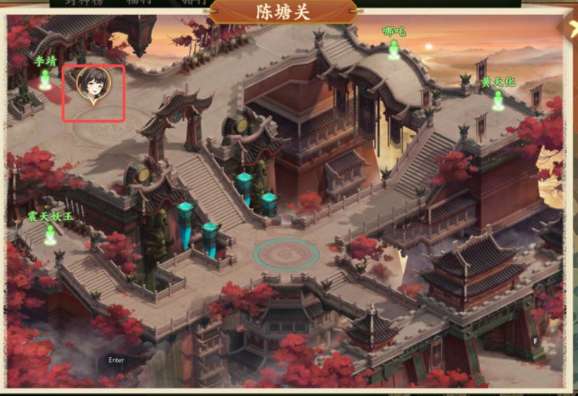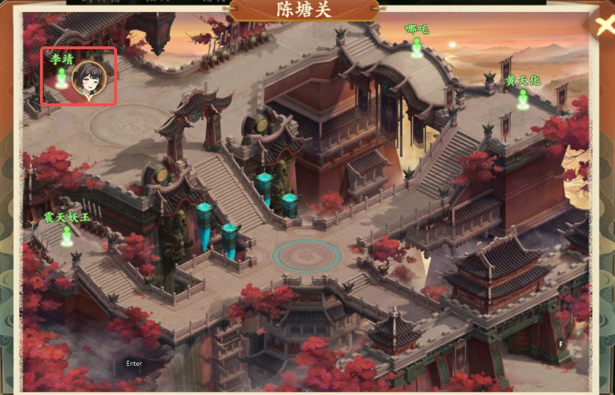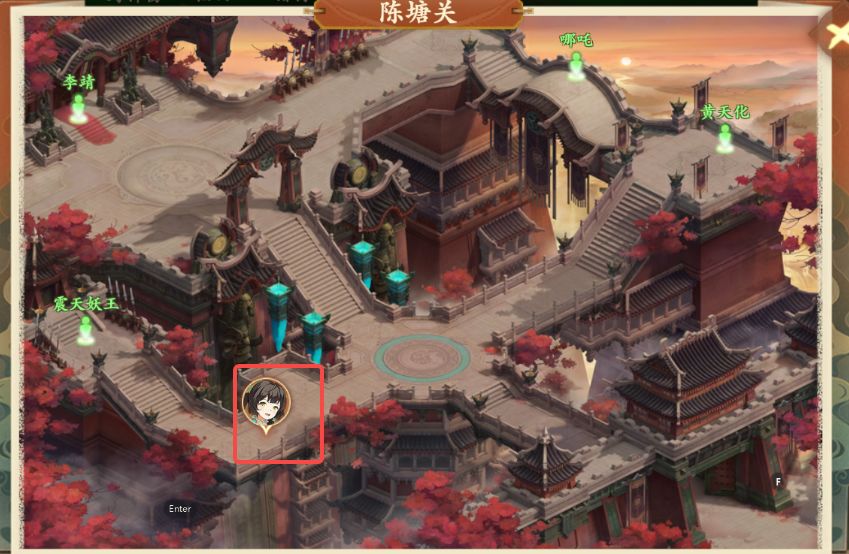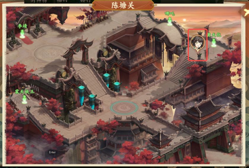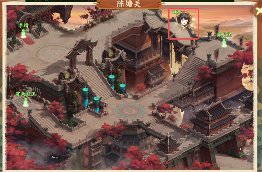 3、拾取后打开地图前往陈塘关黄天化处(如图所示),与黄天化对话