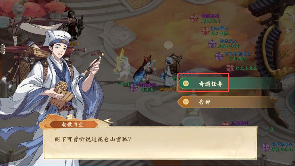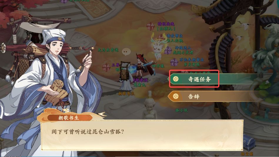 1、前往朝歌如图所示处与朝歌书生对话,领取奇遇任务