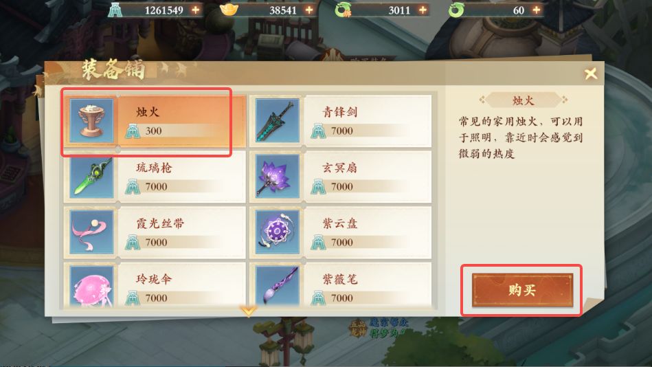 3、再次打开小地图前往装备商人处与其对话购买烛火