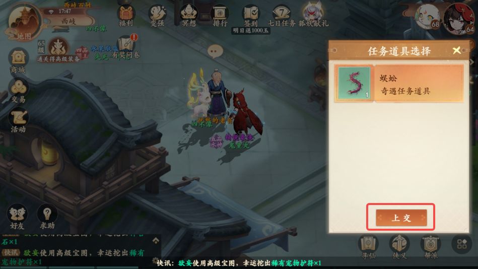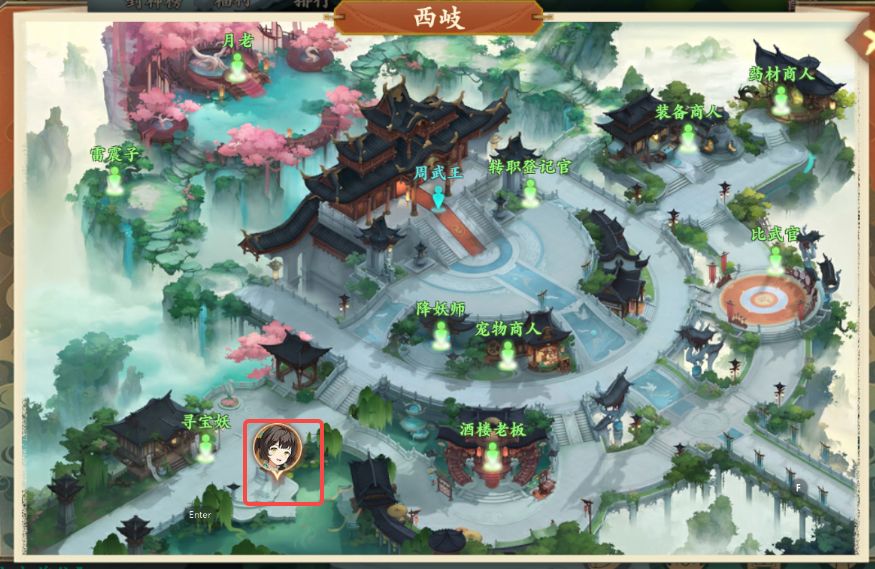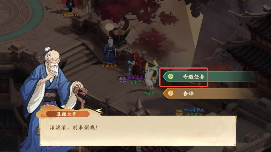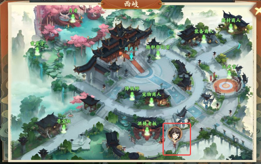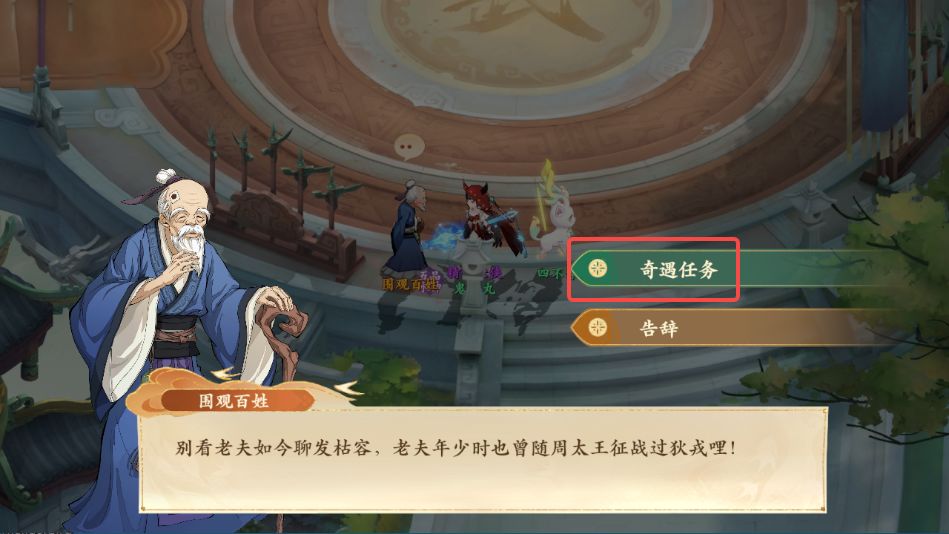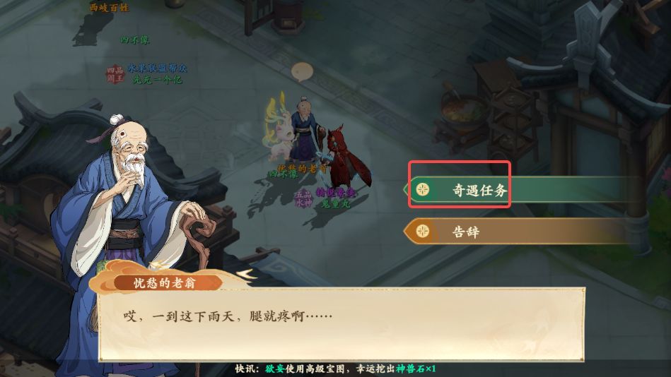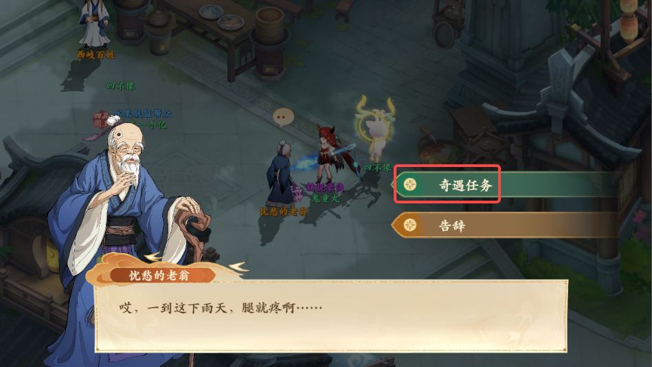 1、前往西岐如图所示位置,与忧愁的老翁对话,领取奇遇任务